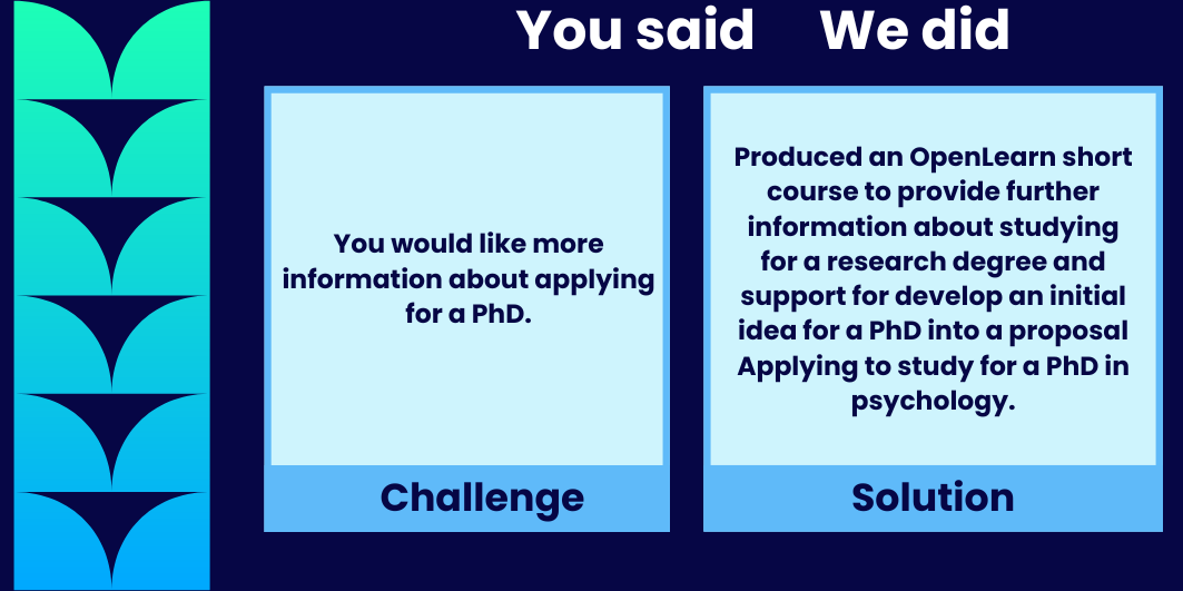 Developed in partnership between the University and Open SU, this site aims to provide a way for students to see how their feedback is listened to and responded to across the University. The website also highlights chances for students to be involved in the growth of the University through student engagement opportunities.